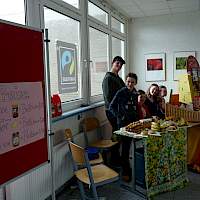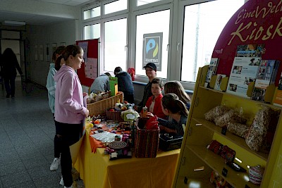 In der Pau­se ver­kauf­te das Team unter ande­rem Bröt­chen mit Coca­ba – eine lecke­re Nuss Nou­gat Crè­me mit fei­nen Hasel­nüs­sen, Bana­nen, Oran­gen­saft und Pop­quins. Dar­über hin­aus stan­den auch fair gehan­del­te hand­werk­li­che Pro­duk­te zum Ver­kauf. Das Team war mit viel Enga­ge­ment bei der Sache. Der Tag hat uns viel Spaß gemacht und kam gut an“, fass­te Jana Grü­ters (Klas­se 8e) zusammen.