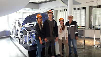 Am 05.07.2017 hat der Geographiekurs von Frau van Stephaudt eine Exkursion im Thyssenkruppwerk unternommen. Zum Einstieg haben wir im Besucherwesen einen allgemeinen Film zur Einführung über Thyssenkrupp angeschaut. Im Rahmen der Arbeitssicherheitsbestimmungen mussten wir eine persönliche Schutzkleidung tragen (Helm, Brille, Gehörschutz). Wir haben den Hafen, die Sinteranlagen und die Hochöfenanlagen von außen besichtigt. Bevor wir das Highlight der Exkursion gesehen haben, besichtigten wir das „Raumschiff Enterprise´´ (Steuerbühne). Das Highlight dieser Exkursion war der Abstich beim Hochofen. Dort wird das Abstichloch aufgebohrt und damit kann flüssiges Roheisen abfließen, um es später als Basis für die Stahlherstellung zu nutzen. Es werden Proben entnommen, damit die Zusammensetzung untersucht werden kann. Eine dieser Proben haben wir für unsere Schule bekommen.