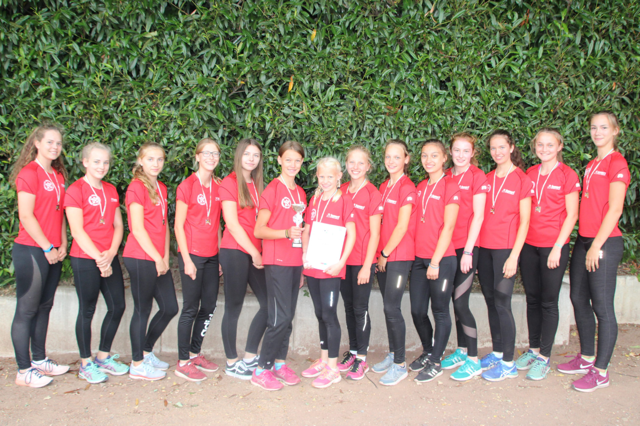 Beim Lan­des­fi­na­le in Lever­ku­sen tra­ten in ver­schie­de­nen Wett­kampf­klas­sen jeweils die sechs bes­ten Leicht­ath­le­tik­teams aus NRW gegen­ein­an­der an. Trotz nicht ganz opti­ma­ler äuße­rer Bedin­gun­gen lie­fen die Ath­le­tin­nen unse­rer Leicht­ath­le­tik­mann­schaft zur Höchst­form auf und zeig­ten fan­tas­ti­sche Ein­zel­leis­tun­gen. Konn­te man sich in eini­gen Dis­zi­pli­nen (z.B. im Weit­sprung oder Sprint) zum Teil deut­lich vor der Kon­kur­renz plat­zie­ren, wur­de spä­tes­tens im 800m-Lauf klar, in dem zwei Ath­le­tin­nen aus Dor­ma­gen die Kon­kur­ren­tin­nen regel­recht über­rann­ten, dass es für Platz 1 und der damit ver­bun­de­nen Titel­ver­tei­di­gung lei­der nicht rei­chen wür­de. Trotz­dem zeig­ten sich die Coachs Yves Reinders und Andre­as Gor­c­zok mit Platz 2 sowie der groß­ar­ti­gen und geschlos­se­nen Mann­schafts­leis­tung höchst zufrie­den. Mit 6984 Punk­ten ver­bes­ser­te man sich sogar noch ein­mal um 61 Punk­te im Ver­gleich zu den Kreismeisterschaften.