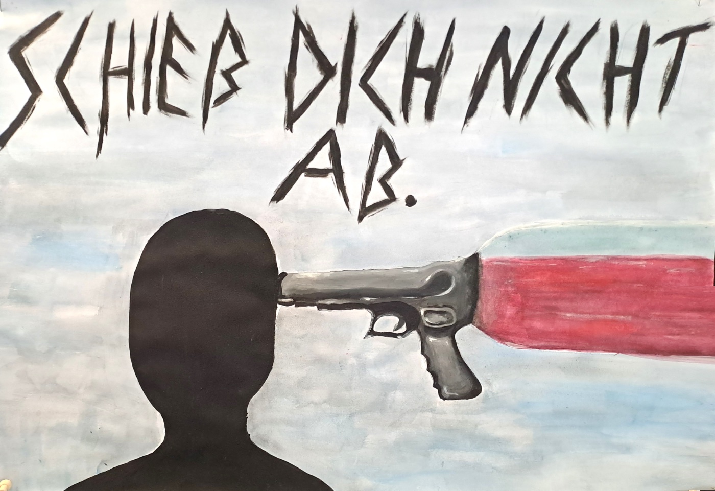Noch immer trin­ken vie­le Jun­gen und Mäd­chen, bis die Ärz­tin oder der Arzt kommt. Laut Daten des Sta­tis­ti­schen Bun­des­amts muss­ten 2022 rund 11.500 Kin­der und Jugend­li­che im Alter von 10 bis 19 Jah­ren wegen aku­ten Alko­hol­miss­brauchs in deut­schen Kran­ken­häu­sern behan­delt wer­den. Die 10ten Klas­sen setz­ten sich mit die­ser The­ma­tik aus­ein­an­der und es ent­stan­den im Kunst­un­ter­richt ein­drucks­vol­le Pla­ka­te die ein Zei­chen gegen den Alko­hol­miss­brauch set­zen. Die Pla­ka­te sind in einer Aus­stel­lung im Mehr­zweck­raum für alle zu besichtigen.