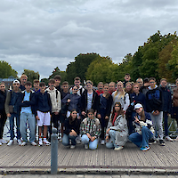 Beim dies­jäh­ri­gen Schü­ler­aus­tausch in Buchy (Frank­reich) konn­te das teil­wei­se schlech­te Wet­ter die über­aus posi­ti­ve Stim­mung in der deutsch-fran­zö­si­chen Grup­pe in kei­ner­lei Wei­se beein­träch­ti­gen. Die Offen­her­zig­keit der Gast­ge­ber und unse­rer Schü­le­rin­nen und Schü­ler half über die Sprach­bar­rie­ren hin­weg und führ­te zu einer unver­gess­li­chen Zeit mit einem auf­re­gen­den Pro­gramm, wozu ein gemein­sa­mer Ori­en­tie­rungs­lauf, ein Kunst­pro­jekt, der Besuch des Con­tai­ner­ha­fens in Le Hav­re und noch vie­les mehr zähl­te. Schließ­lich gab es in Paris noch ein ganz beson­ders auf­re­gen­des Erleb­nis, als König Charles mit Camil­la in einer Limou­si­ne mit Eskor­te vorbeifuhr.