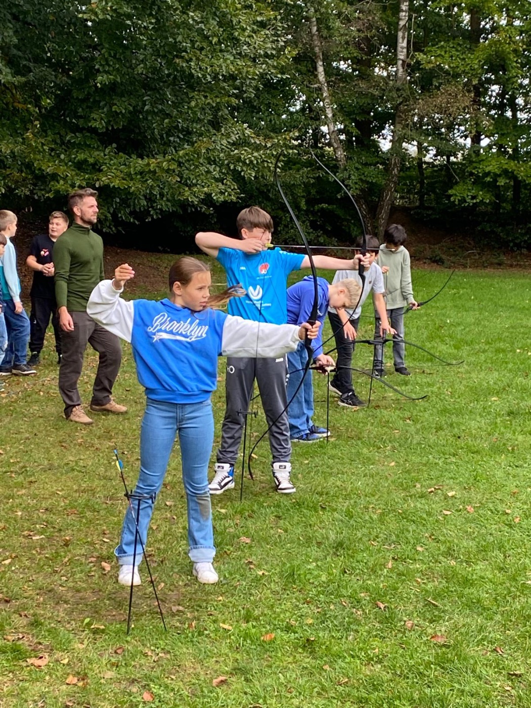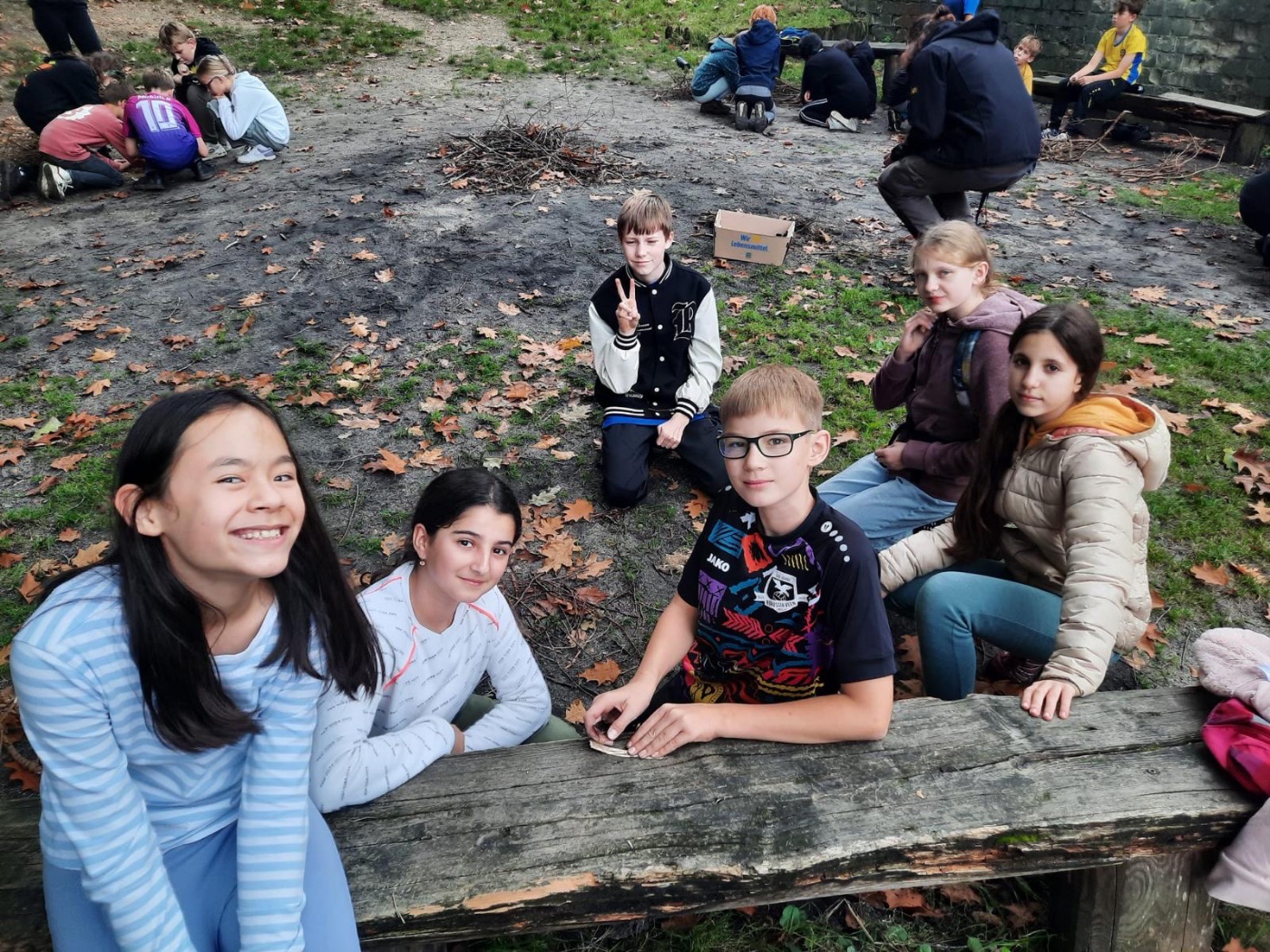 Für 107 Schülerinnen und Schüler startete eine spannende Woche zunächst mit einer dreitätigen Klassenfahrt zum Wolfsberg nach Kleve. Bei bestem Wetter sollten unter Anleitung von Naturguide Waldemar und seinem Team im Wald Schutzhütten entstehen, in Gruppen wurde gemeinsam geplant, gesammelt und erfolgreich gebaut. Auch beim Feuermachen mit Feuerstein und Reisig wurde Zusammenarbeit und Geduld am Ende bei allen belohnt, der Jubel war groß, als die ersten Flammen zu sehen waren.