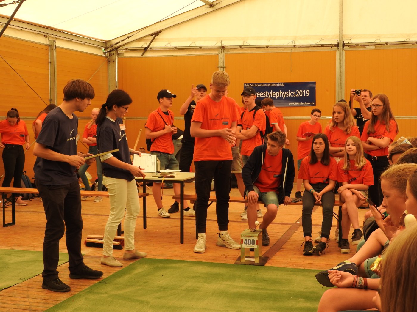 „Freestyle-physics“ ist ein Wettbewerb für Schülerinnen und Schüler die bereit sind, sich physikalischen Problemen zu stellen und ein Bauprojekt zu übernehmen. Die Planung und Durchführung kann für eine begrenzte Schülerzahl im Rahmen der Physik-AG erfolgen, die jeden Montag von 13.30 Uhr bis 15.00 Uhr im Raum F011 stattfindet. Die Präsentation der Projekte findet in jedem Jahr in der Universität Duisburg ganztägig statt. Dort finden sich Schülerinen und Schüler aus allen Schulen und in jeder Altersklasse aus ganz Deutschland ein und präsentieren ihr Bauprojekte zu den jeweiligen Aufgabenstellungen. Noch am gleichen Tag findet auch die Siegerehrung statt, es gibt tolle Preise zu gewinnen.